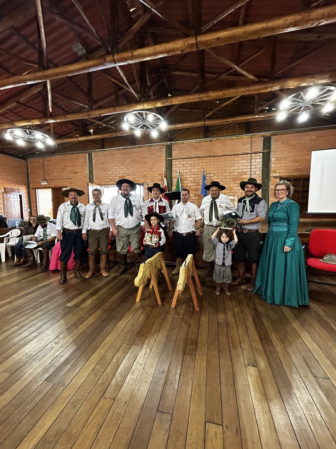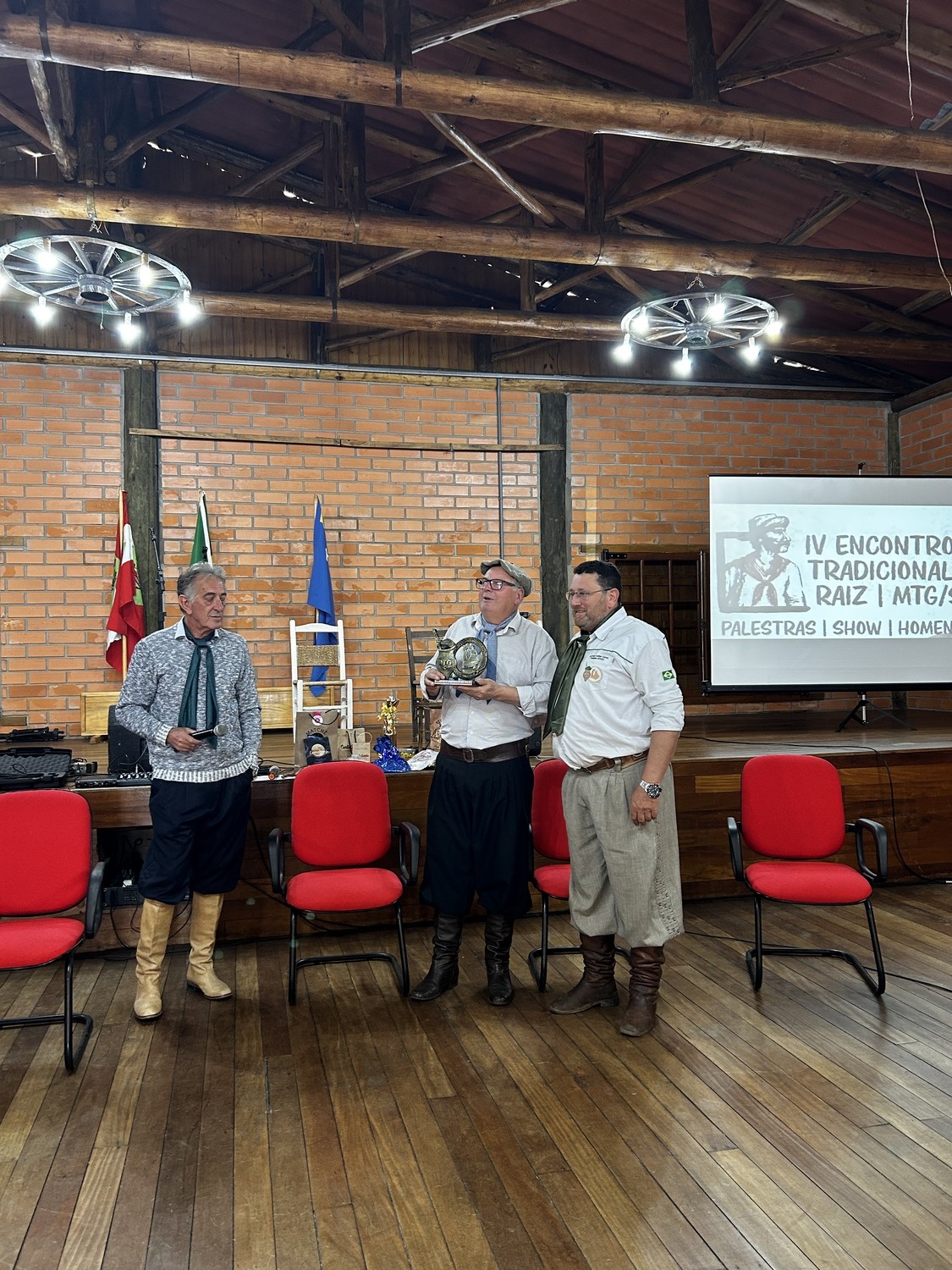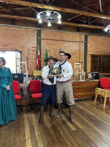 Após o almoço de confraternização, os participantes acompanharam o show palestra com Rogério Villagran, que uniu música e reflexão em uma apresentação envolvente. Encerrando a programação, foram realizadas homenagens a tradicionalistas que se destacam na preservação e promoção da cultura gaúcha.